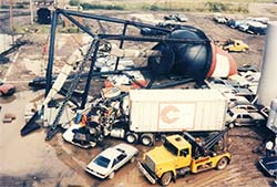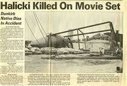 August 20,1989 H.B. "Toby" Halicki known as the "Car-Crash-King", was killed tragically in an accident on the set, when a 160 foot-tall water tower suddenly toppled unexpectedly. A cable attached to the tower snapped and, then whipped around and sheared off a telephone pole, which fell on him.